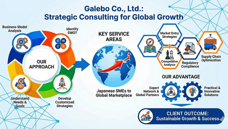 In today’s rapidly evolving global market, the need for small and medium-sized enterprises (SMEs) to adapt and thrive has never been more critical. At Galebo, we understand the unique challenges faced by Japanese SMEs and are committed to empowering these businesses with the strategic consulting, education, and trading solutions they need to achieve their global aspirations.